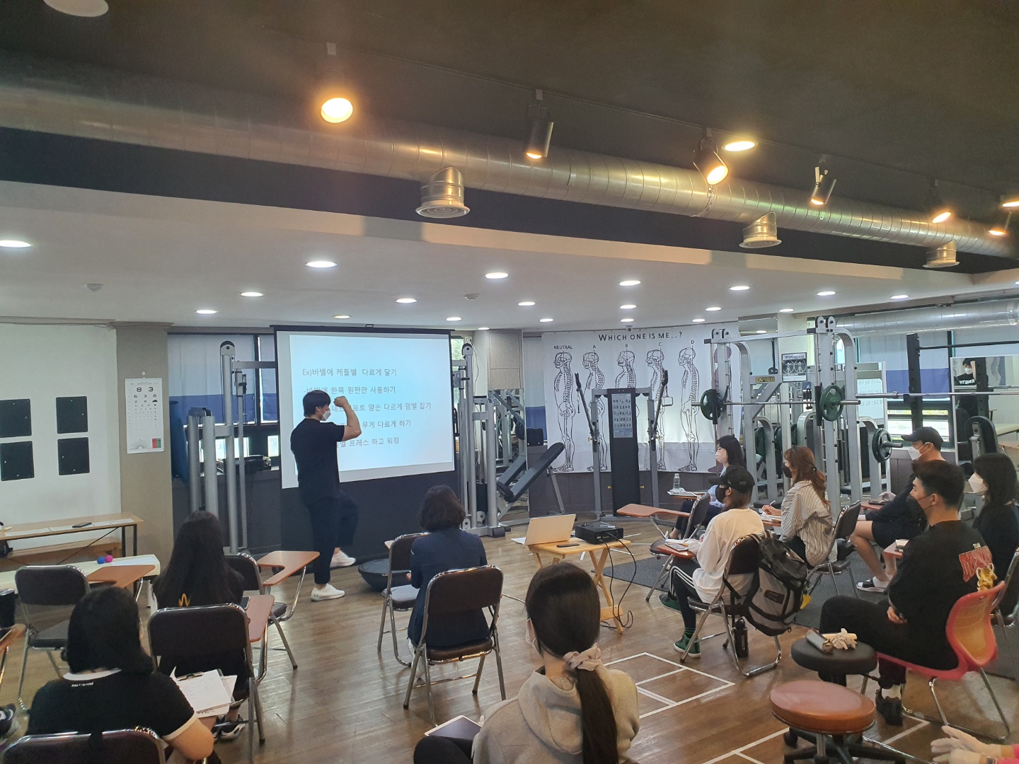 장소는 대전대학교에서 하였구요, 갈마동 에스엠체형교정퍼스널트레이닝센터에서 나눠서 진행하였습니다.