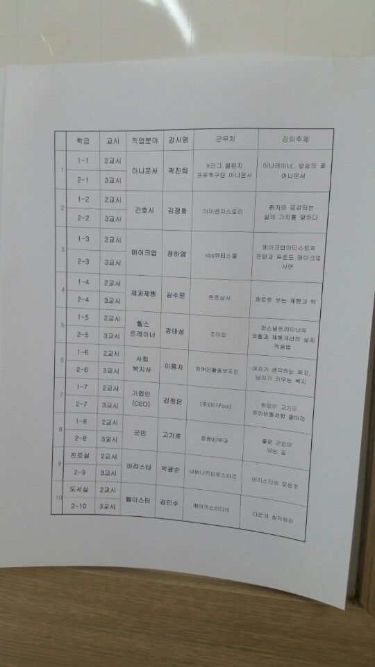 스승의날 기념으로 직업인 특강을 계획하신듯합니다