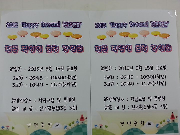 지난주 5월15일 금요일 청주 경덕중학교에서 직업인 특강으로