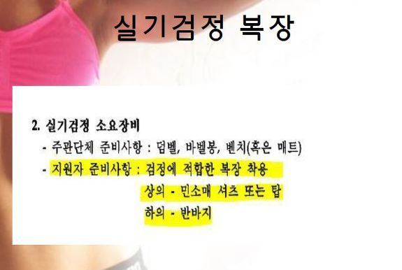 노인스포츠지도사도 보디빌딩 처럼 복장은 동일합니다.