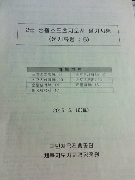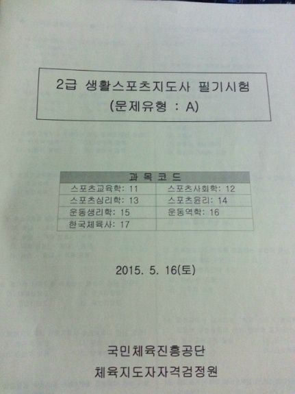 얼마전 2015 생활스포츠지도사 시험 부감독으로 들어갔었는데요