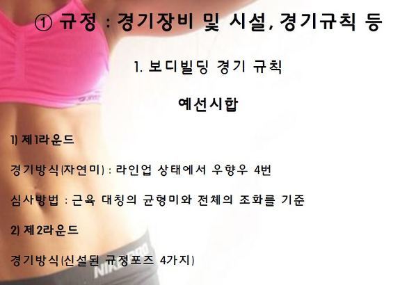 보디빌딩 경기 규칙은 어떻게 되는지를? 알아 두시면 좋을것 같구요