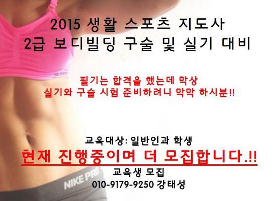 2015 생활스포츠지도사 2급 보디빌딩 구슬과 실기 대비반 모집