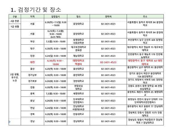 1. 검정 기간 및 장소