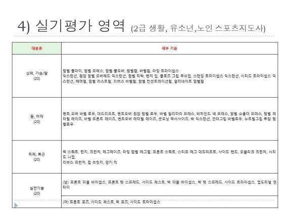 그리고 실기 운동에 대한 자료와 심사 기준안은